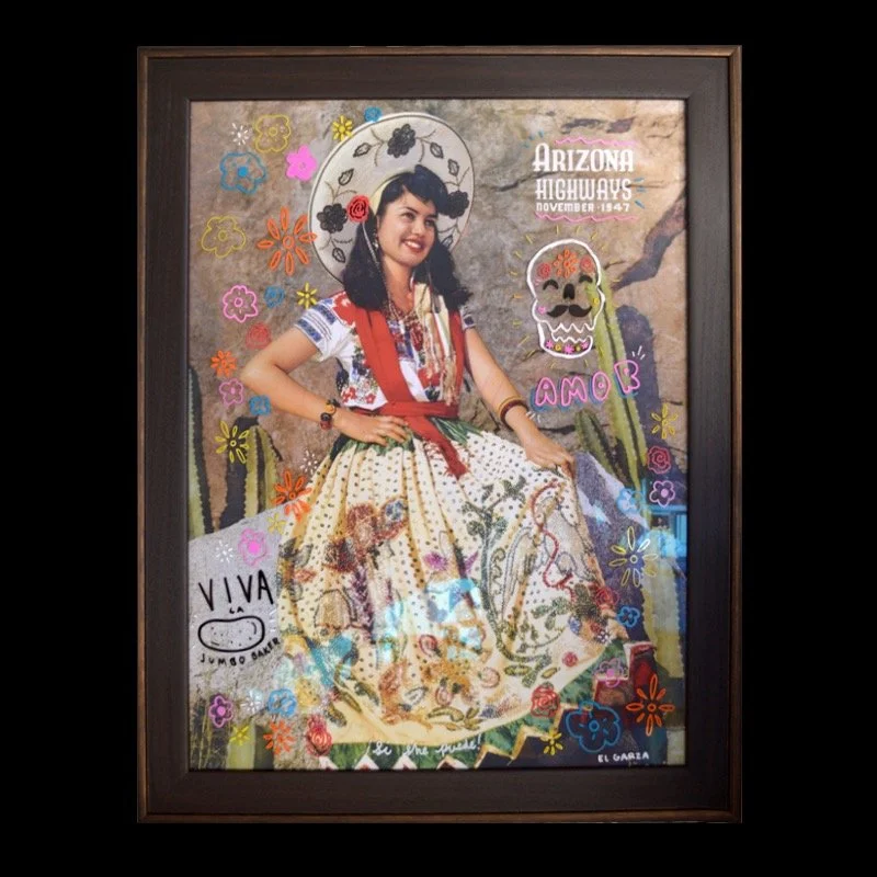 Glass paintings on framed vintage Arizona Highways covers for Joes Real BBQ in Gilbert, AZ. This was a series of 12 painted framed covers.